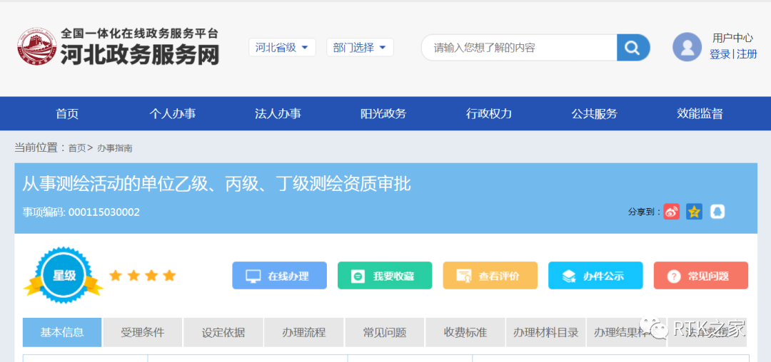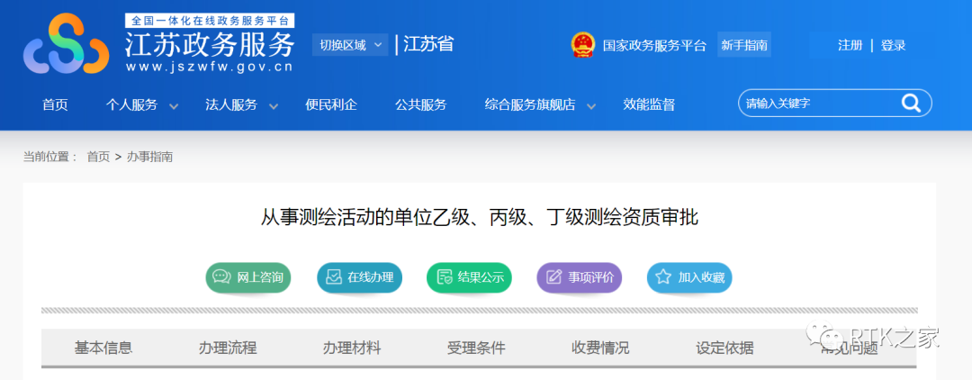 如何申請(qǐng)測(cè)繪乙、丙和丁級(jí)測(cè)繪資質(zhì)?眾所眾知,從事測(cè)繪活動(dòng)的單位,應(yīng)當(dāng)依法取得測(cè)繪資質(zhì)證書(shū),并在測(cè)繪資質(zhì)等級(jí)許可的范圍內(nèi)從事測(cè)繪活動(dòng)。而測(cè)繪資質(zhì)分為甲、乙、丙、丁四級(jí)。 國(guó)家測(cè)繪地理信息局是甲級(jí)測(cè)繪資質(zhì)審批機(jī)關(guān),負(fù)責(zé)審查甲級(jí)測(cè)繪資質(zhì)申請(qǐng)并作出行政許可決定。省級(jí)測(cè)繪地理信息行政主管部門(mén)是乙、丙、丁級(jí)測(cè)繪資質(zhì)審批機(jī)關(guān),負(fù)責(zé)受理、審查乙、丙、丁級(jí)測(cè)繪資質(zhì)申請(qǐng)并作出行政許可決定;負(fù)責(zé)受理甲級(jí)測(cè)繪資質(zhì)申請(qǐng)并提出初步審查意見(jiàn)。 今天小編就為大家整理了各省市的乙、丙、丁級(jí)測(cè)繪資質(zhì)申請(qǐng)方法。 1、北京 詳情可見(jiàn):http://ghzrzyw.beijing.gov.cn/cehuidilixinxi/chdlxx_xzxksx/201912/t20191213_1159387.html 2、河北省 詳情可見(jiàn): http://www.hbzwfw.gov.cn/art/2019/11/20/art_21290_9885.html 3、山西省 詳情可見(jiàn): http://www.sxzwfw.gov.cn/icity/icity/proinfo?code=5000-A-00200-140000 4、內(nèi)蒙古省 詳情可見(jiàn): http://zwfw.nmg.gov.cn/handle_affairs_detail?regionCode=150000&item_detail_id=bb4497086ae761e2016ae7e9b1537da5&highlight=corporation&record=istrue 5、吉林省 詳情可見(jiàn): http://zwfw.jl.gov.cn/jlszwfw/bsznxq/?taskCode=11220000MB1570195E200011503000206 6、黑龍江省 詳情可見(jiàn): http://hlsm.mnr.gov.cn/ggfw/xzfw/2c907f087167b849017167c3465a0613.html 7、天津市 詳情可見(jiàn): https://zwfw.tj.gov.cn/tj_twfw/page/xzrules.html?taskCode=11120000MB1909339E3120199023000&record=istrue 8、遼寧省 詳情可見(jiàn): https://center.lnzwfw.gov.cn/api/web/matter/getContent?id=11210000001099743F2210100738001 9、江蘇省 詳情可見(jiàn): http://www.jszwfw.gov.cn/jszwfw/bscx/itemlist/bszn.do?webId=1&iddept_yw_inf=113200000140000609200011503000201&ql_kind=01&iddept_ql_inf=1132000001400006092000115030002&iszx= 10、浙江省 詳情可見(jiàn): http://www.zjzwfw.gov.cn/zjservice/item/detail/index.do?localInnerCode=6f6491bd-949f-4cd7-bfb3-cda196730d48&webId=1 11、安徽省 詳情可見(jiàn): http://zrzyt.ah.gov.cn/public/content/115448391 12、福建省 詳情可見(jiàn): http://zwfw.fujian.gov.cn/person-todo/todo-fingerpost?unid=6C833872C7001FCAA0B7C021E7B4B93D&infoType=1 13、江西省 詳情可見(jiàn): http://www.jxzwfww.gov.cn/jxzw/xzql/gotoxzqlmore.do?code=360000-0039-XK-007&wid=1 14、山東省 詳情可見(jiàn): http://zwfw.sd.gov.cn/sdzw/items/list/detail.do?innercode=3014269 15、河南省 詳情可見(jiàn): http://www.hnzwfw.gov.cn/art/2019/6/28/art_24_6751227.html 16、湖北省 詳情可見(jiàn): http://zwfw.hubei.gov.cn/s/web/bszn/bsznpage.html?transactCode=11420000MB1644959R200011503000201&taskType=01 17、湖南省 詳情可見(jiàn): http://searching.hunan.gov.cn/hunan/114000000/fuwu?q=%E6%B5%8B%E7%BB%98%E4%B9%99%E7%BA%A7 18、廣西省 詳情可見(jiàn): http://zwfw.gxzf.gov.cn/art/2020/5/27/art_3_14889477.html 19、海南省 詳情可見(jiàn): https://wssp.hainan.gov.cn/wssp2/sx/sxDetail?id=327591&pageTypeValue=3&deptId=HZ2881f4424539dd0142453c856b0025 20、重慶市 詳情可見(jiàn): http://ghzrzyj.cq.gov.cn/zwgk_186/fdzdgknr/lzyj/xzgfxwj/202002/t20200208_4947322.html