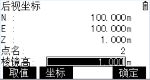 點(diǎn)擊3【設(shè)置后視】-2【坐標(biāo)定后視】-F2【新建坐標(biāo)】-輸入后視點(diǎn)坐標(biāo)【100.000,100.000,1】、點(diǎn)名【2】-F1【記錄】-輸入棱鏡高【1m】 FOURTH STEP 第四步